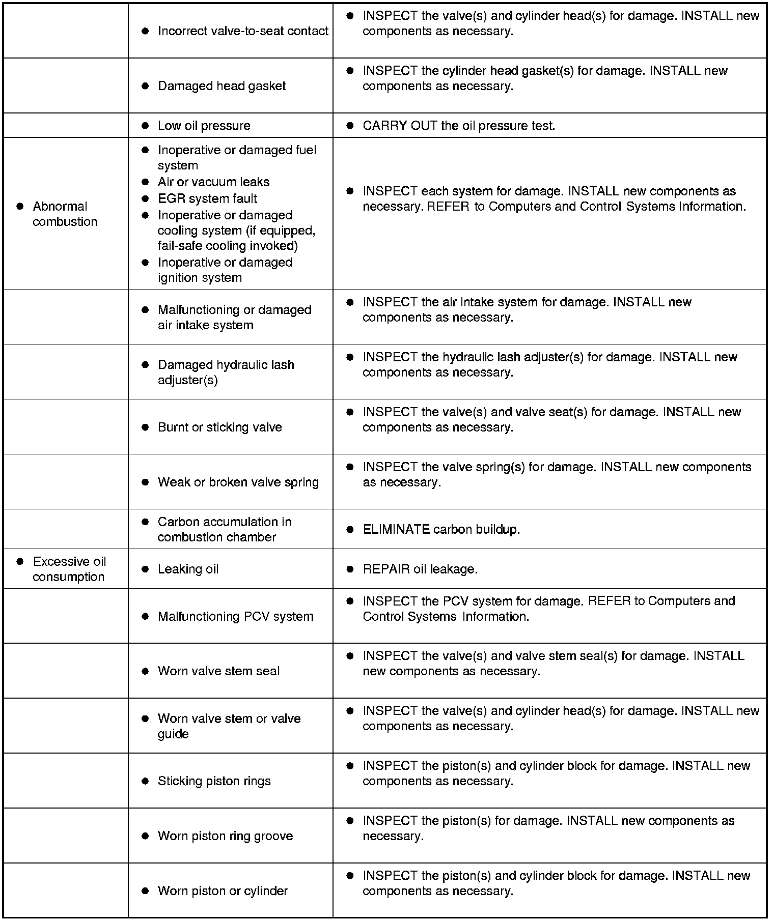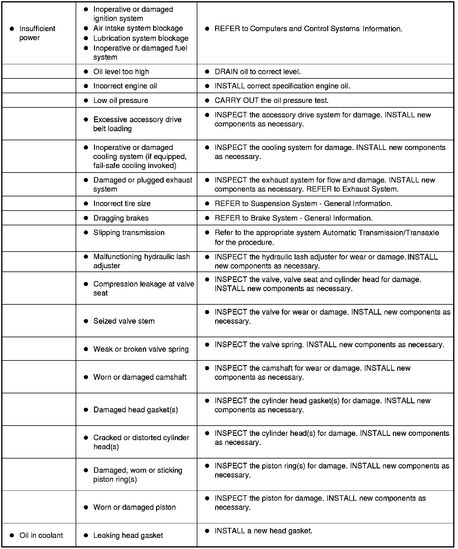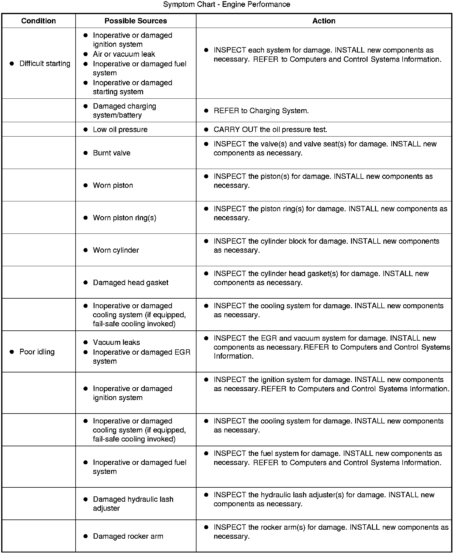Symptom Chart - Engine Performance