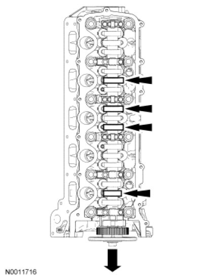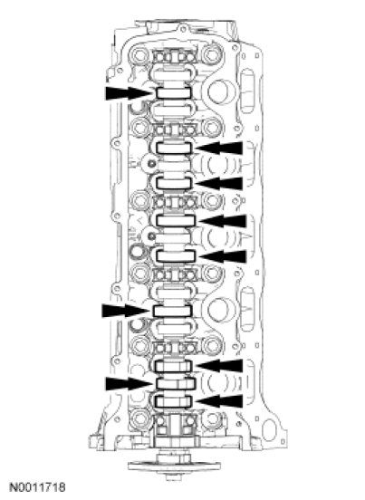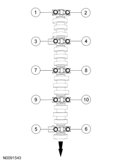 24. NOTICE: The camshaft bearing caps must be installed in their original locations. Record camshaft bearing cap locations. Failure to follow these instructions may result in engine damage.