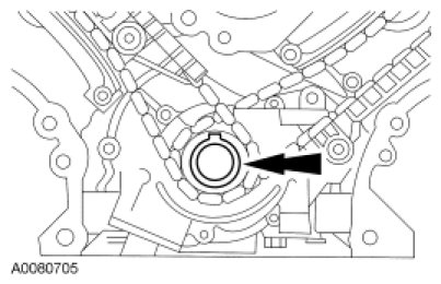 - Remove the LH timing chain and the crankshaft sprocket.