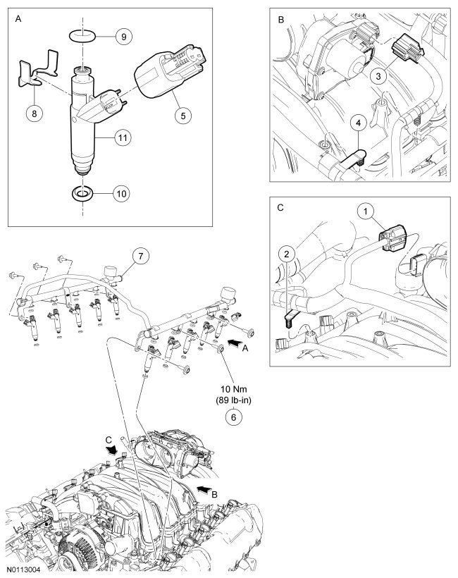 Fuel Rail and Fuel Injector - Exploded View