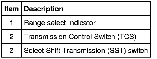 The Transmission Control Switch (TCS) is a momentary contact switch located on the end of the selector lever.