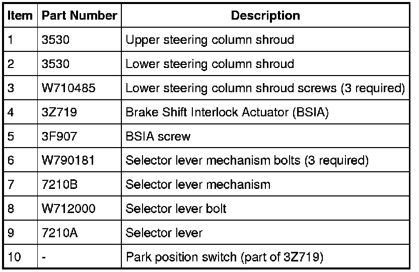 2. Remove the Brake Shift Interlock Actuator (BSIA) screw.