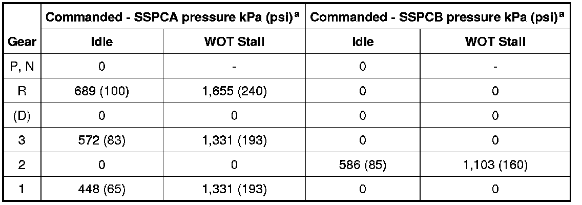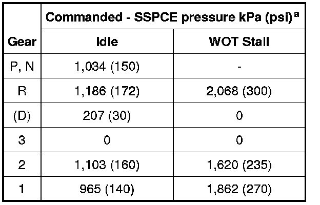 NOTE: Actual and commanded pressures vary based on calibration and transmission adaptive strategies. All pressures listed are approximate.