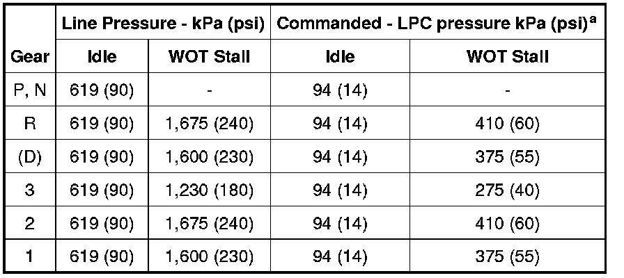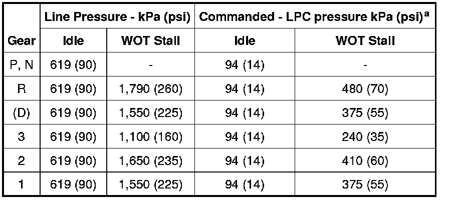 NOTE: Actual and commanded pressures vary based on calibration and transmission adaptive strategies. All pressures listed are approximate.