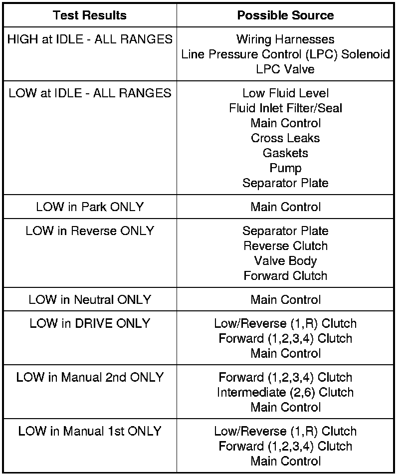 2. Start the engine and check the line pressures. Refer to the Line Pressure Chart to determine if the line pressure is within specification.