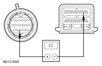 - Measure the resistance between the PCM C175T-14 circuit RET04 (YE/OG) and ground.