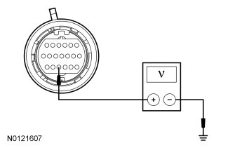 - Check for voltage between the transmission vehicle harness C1623-17 circuit RET04 (YE/OG) and ground.
