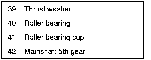 14. NOTE: A ball bearing is between the thrust washer and the mainshaft. The ball bearings are not interchangeable.