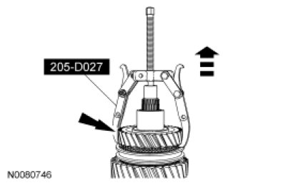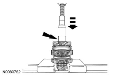 13. Invert the mainshaft. Using the Bearing Puller and a suitable press, remove the 5th gear and roller bearing.