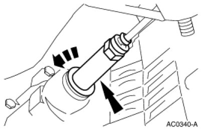 17. NOTE: If a pry area is not available on the driveshaft side, it may be necessary to tap the driveshaft yoke with a plastic or rubber soft-faced hammer.
