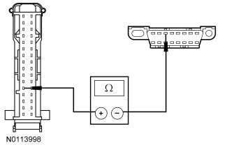 NOTE: Failure to disconnect the battery when instructed will result in false resistance readings. Refer to Battery, Mounting and Cables Battery Disconnect / Connect.