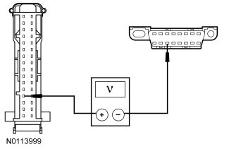- Measure the voltage between the HVAC module C228-32, circuit SBP46 (BN/RD), harness side and ground.