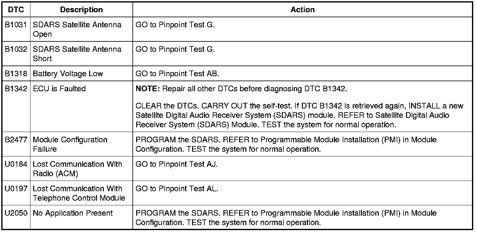 Satellite Digital Audio Receiver System (SDARS) Module DTC Chart