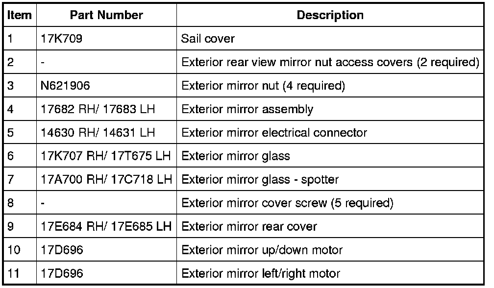 Exterior Mirrors - Exploded View