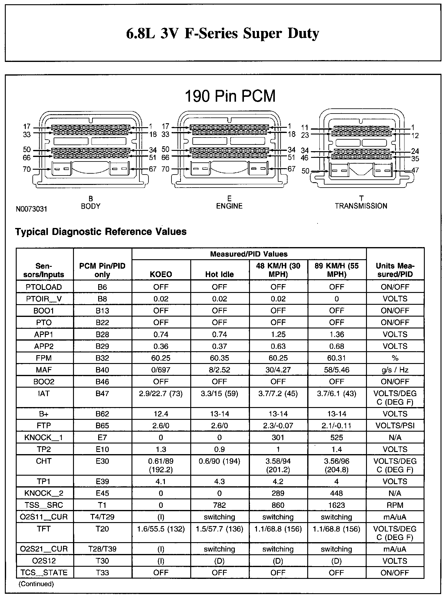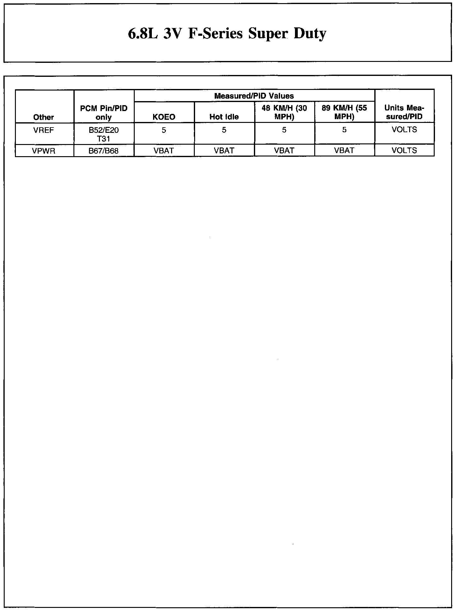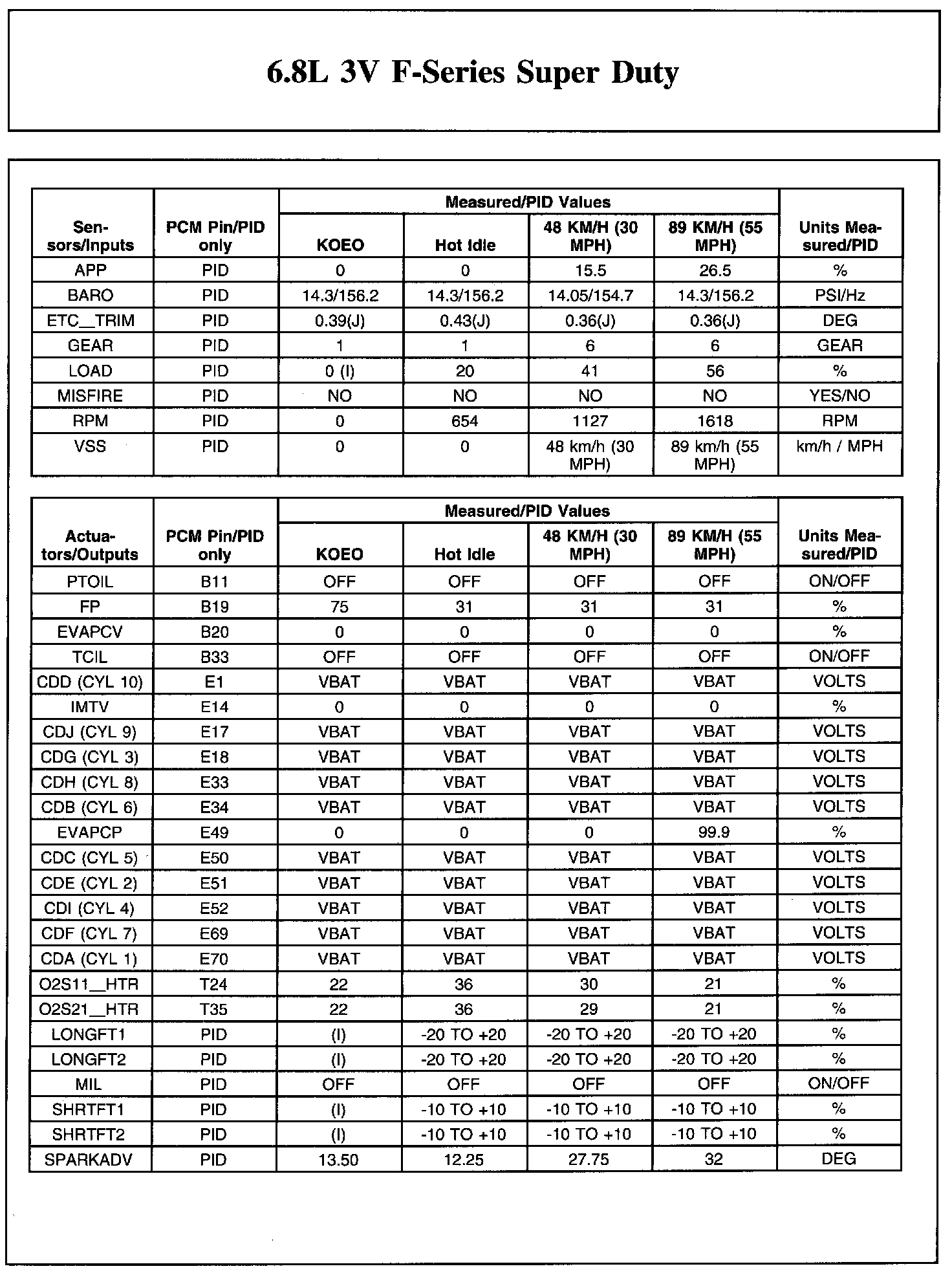 The Typical Diagnostic Reference Value Charts do not display fault parameter identifications (PIDs). These are PIDs which indicate a hard fault with the circuit. They display a value of YES or NO and are PIDs ending with the letter F.