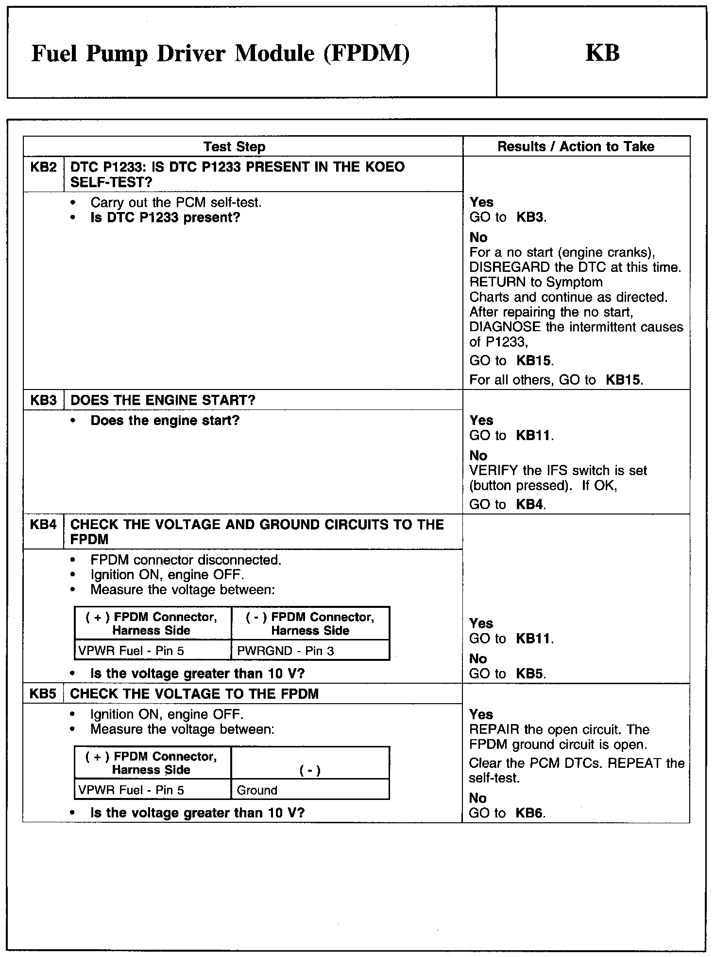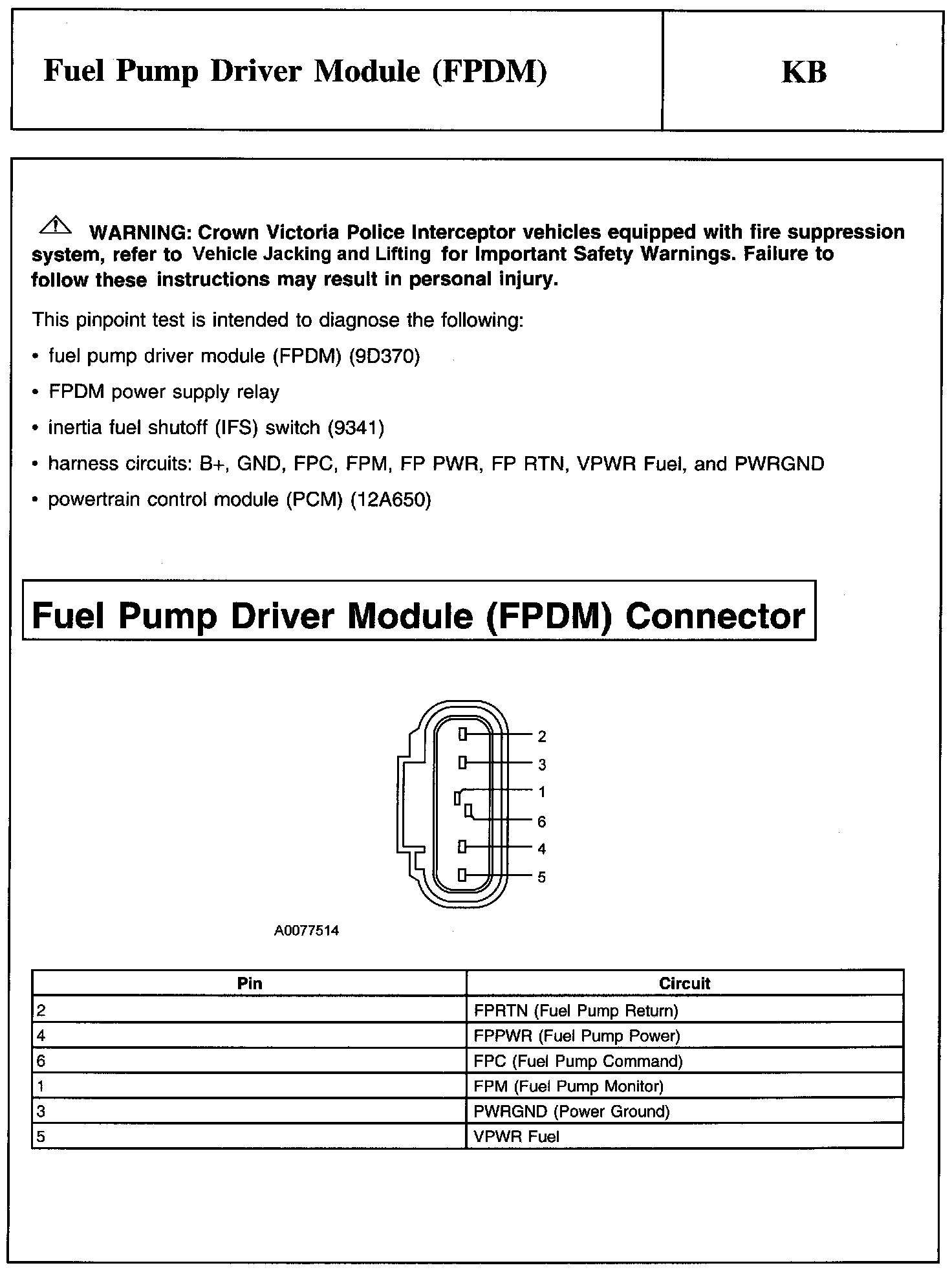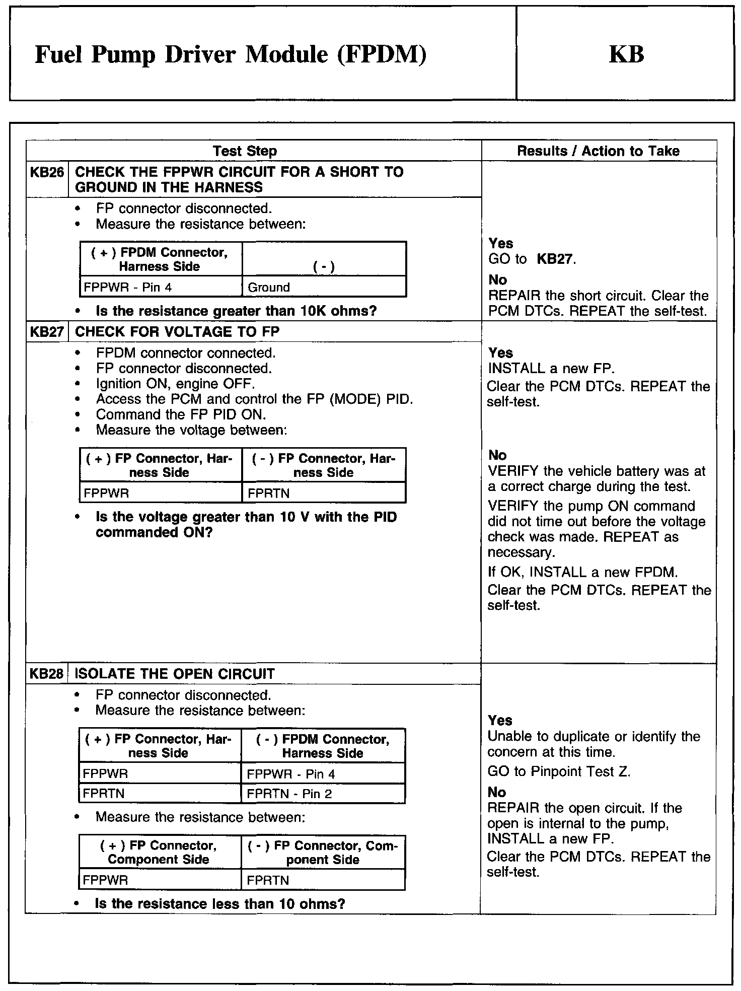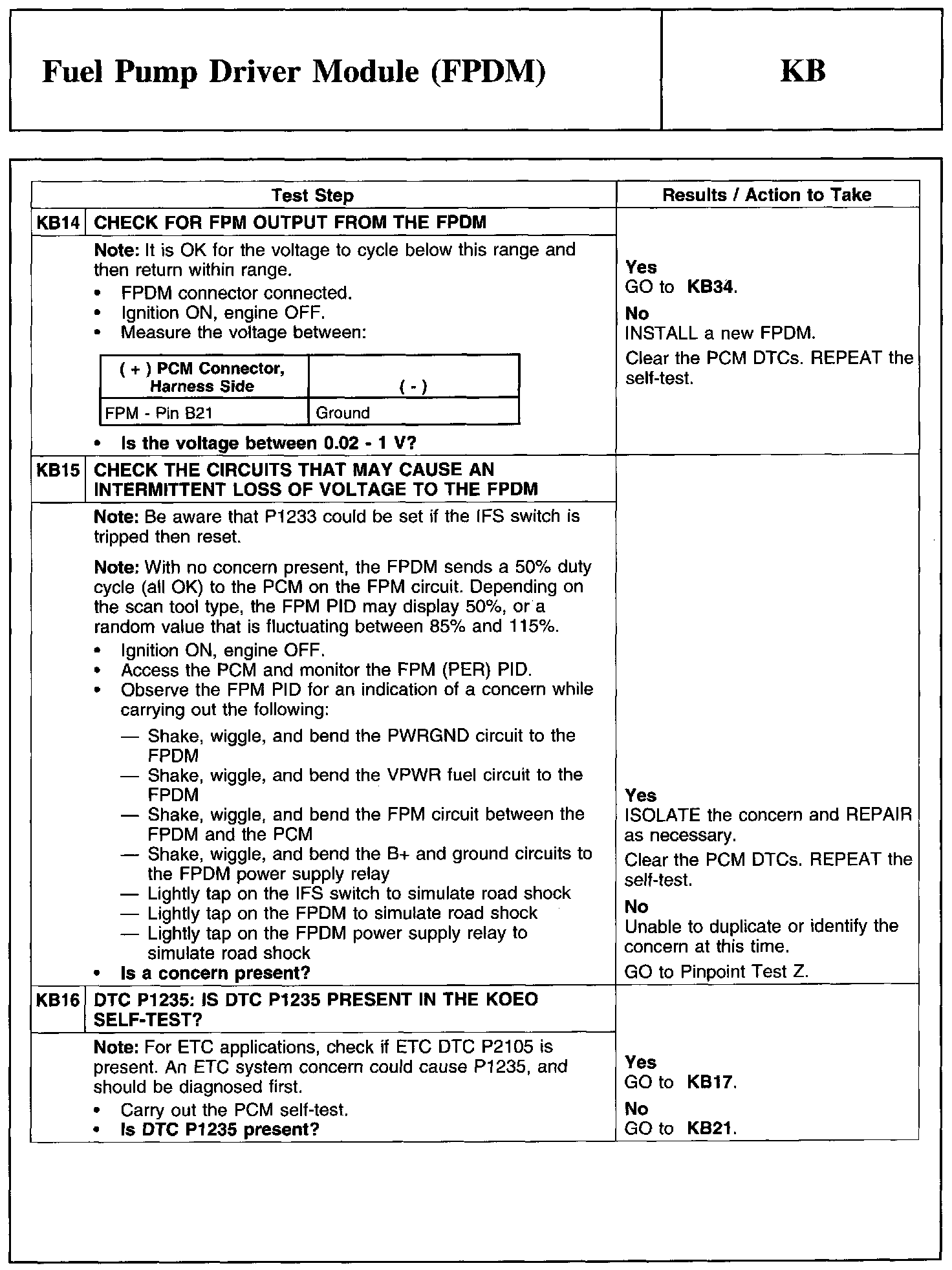 Test KB: Fuel Pump Driver Module (FPDM)