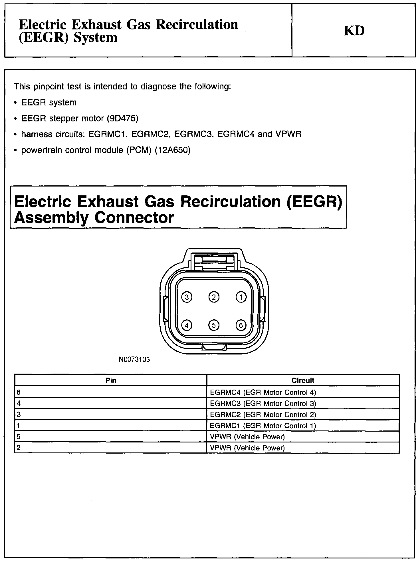 PINPOINT TEST KD: ELECTRIC EXHAUST GAS RECIRCULATION (EEGR) SYSTEM