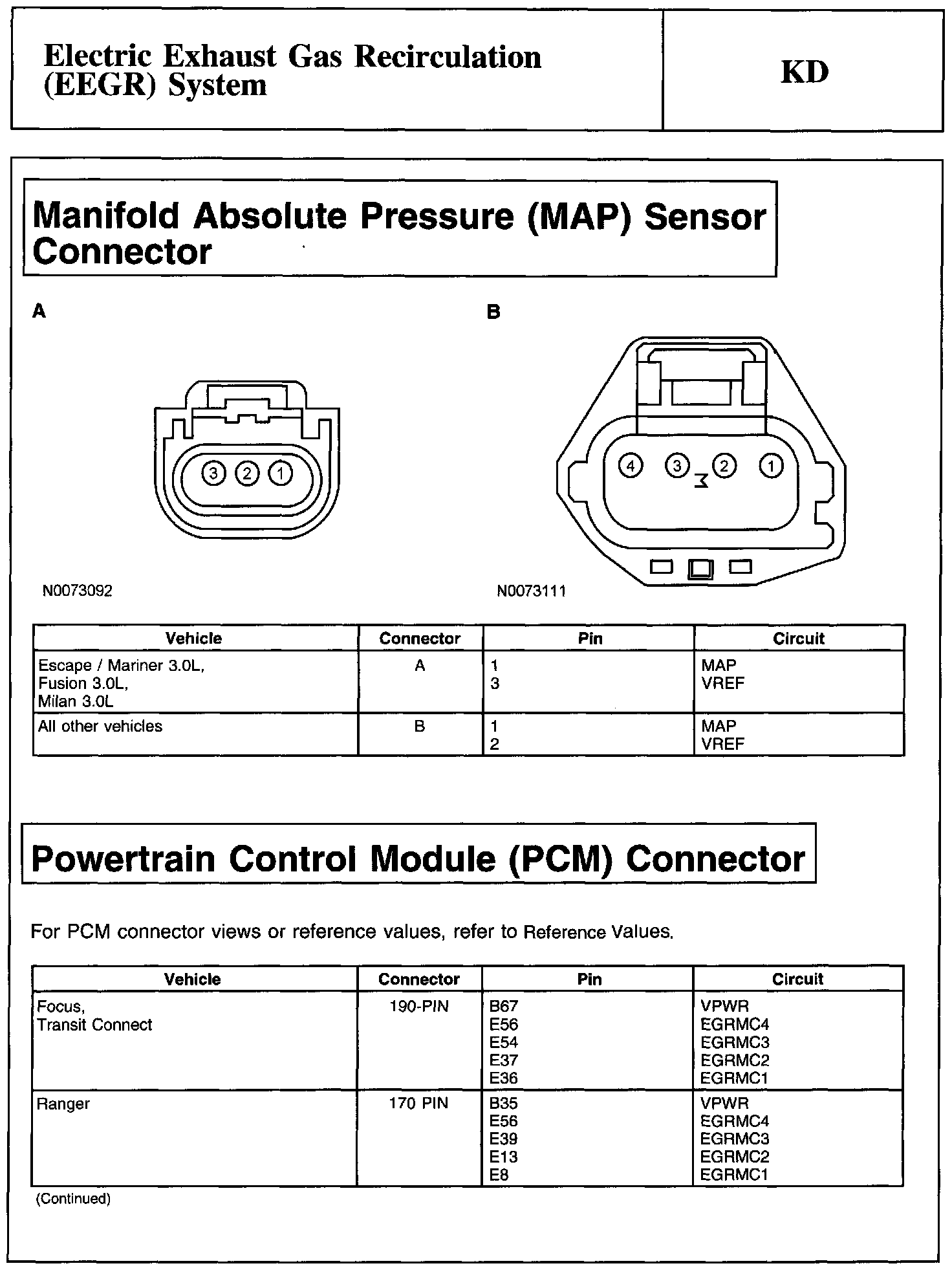 Manifold Absolute Pressure (MAP) Sensor Connector And Powertrain Control Module (PCM) Connector: