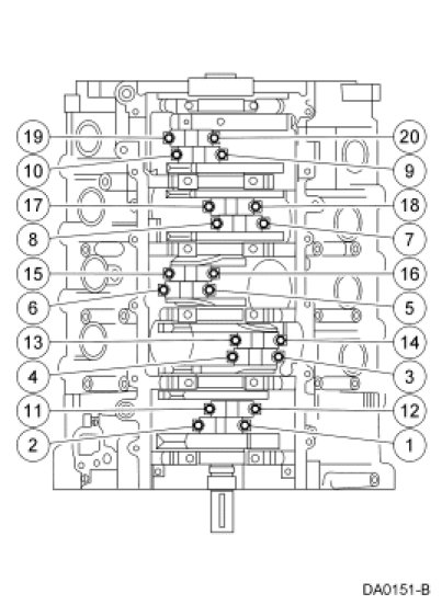 Tighten the connecting rod bolts in the sequence shown.