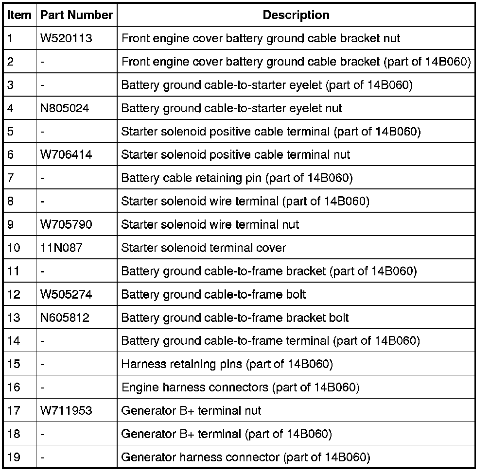 12. NOTE: It may be necessary to position the RH splash shield aside to access the battery ground cable bolt.