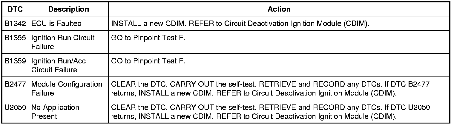 Circuit Deactivation Ignition Module (CDIM) DTC Chart