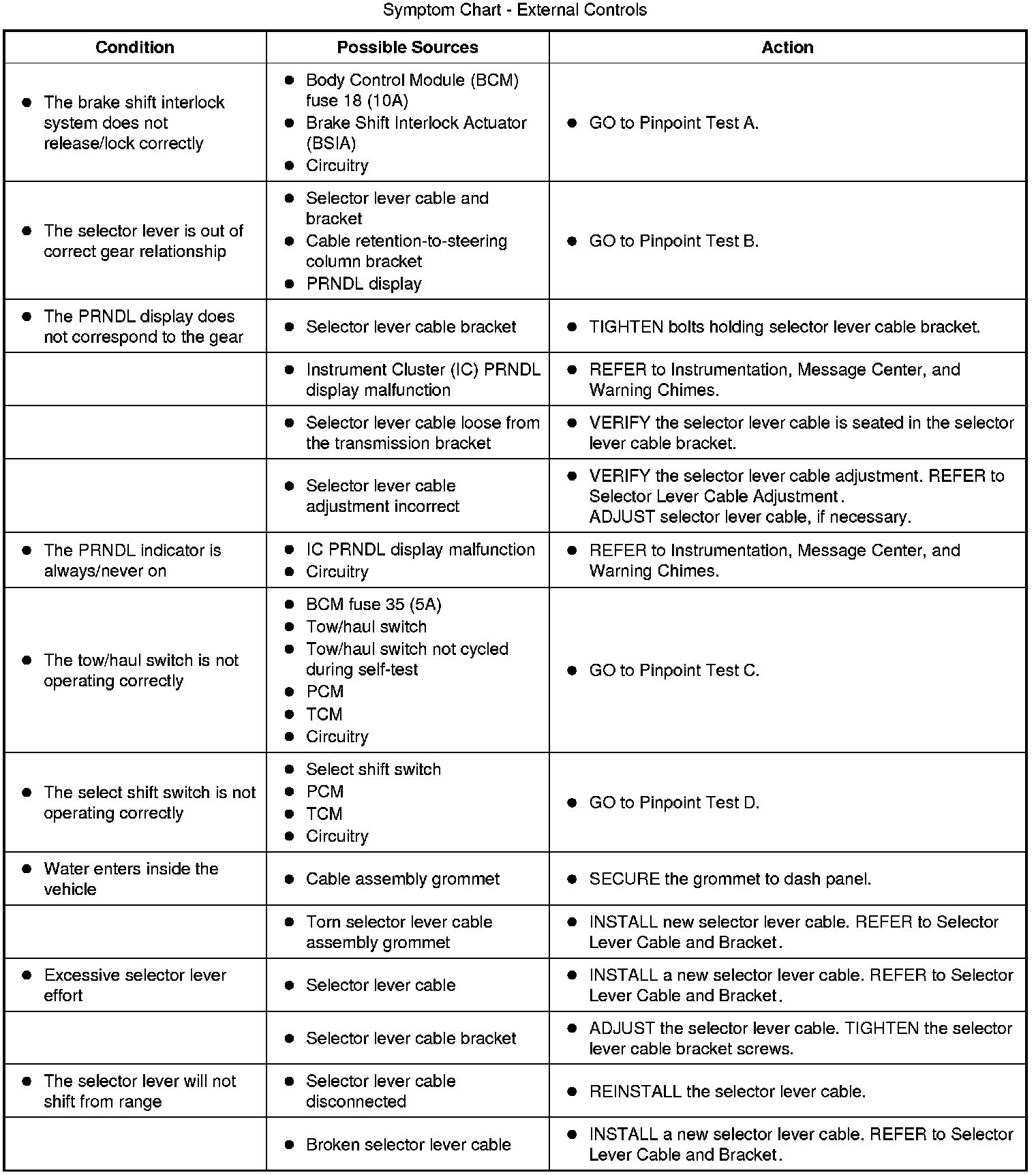 Symptom Chart - External Controls