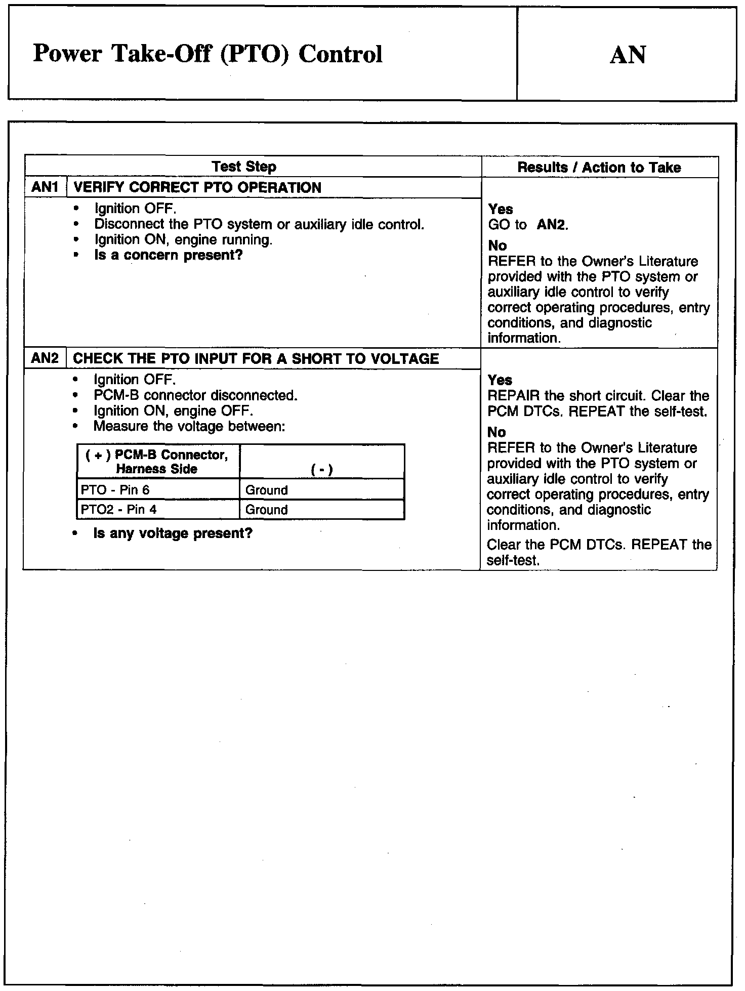 PINPOINT TEST AN: POWER TAKE-OFF (PTO) CONTROL