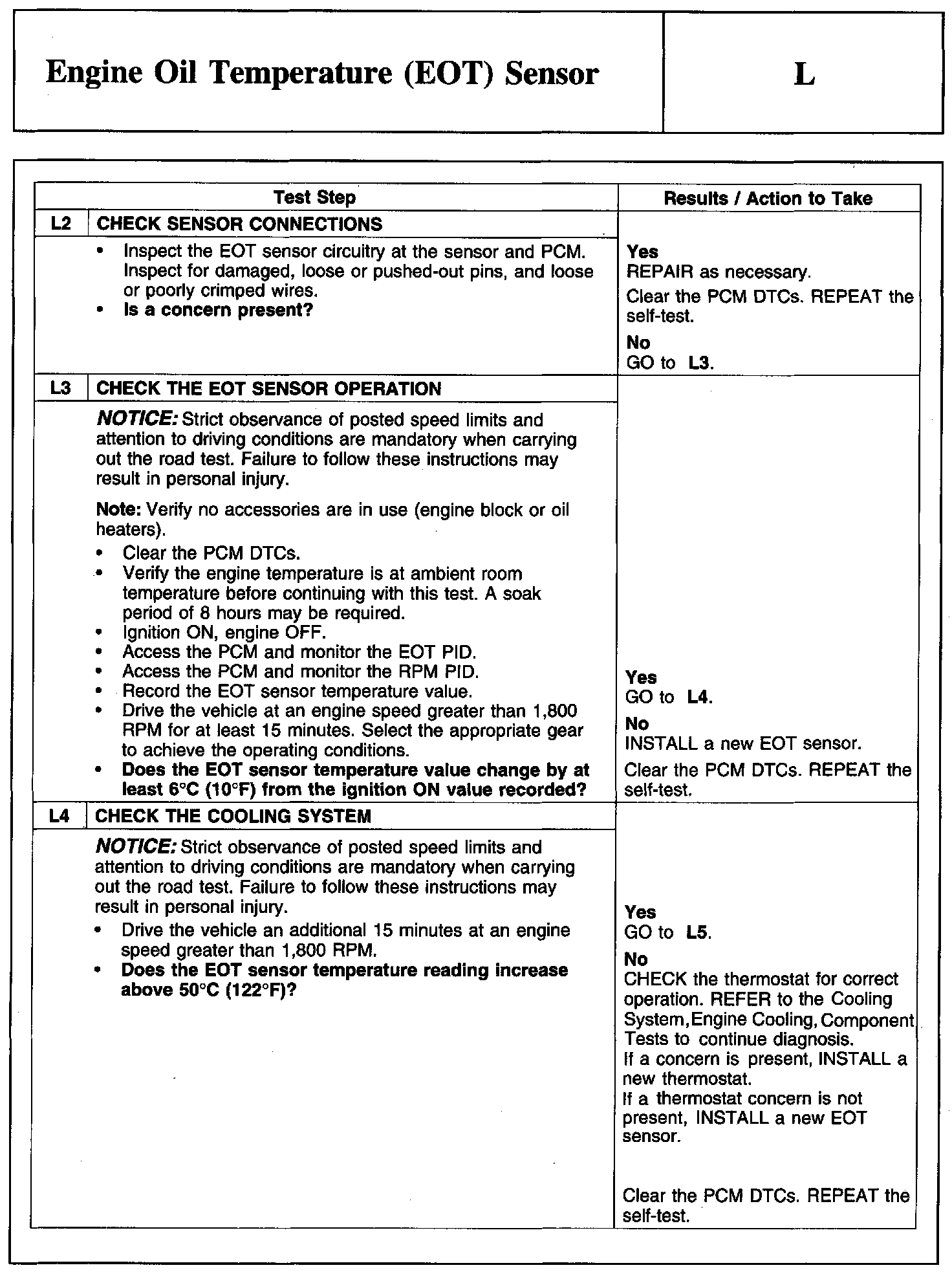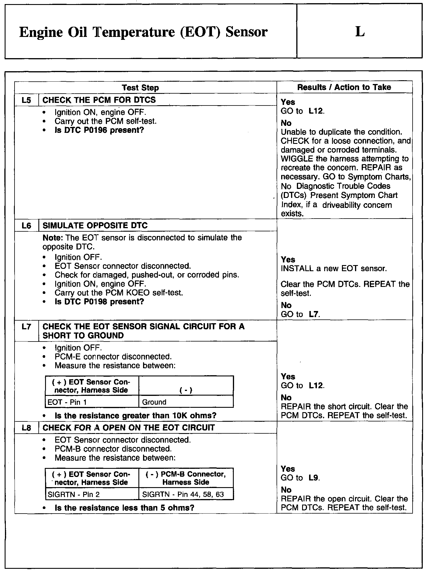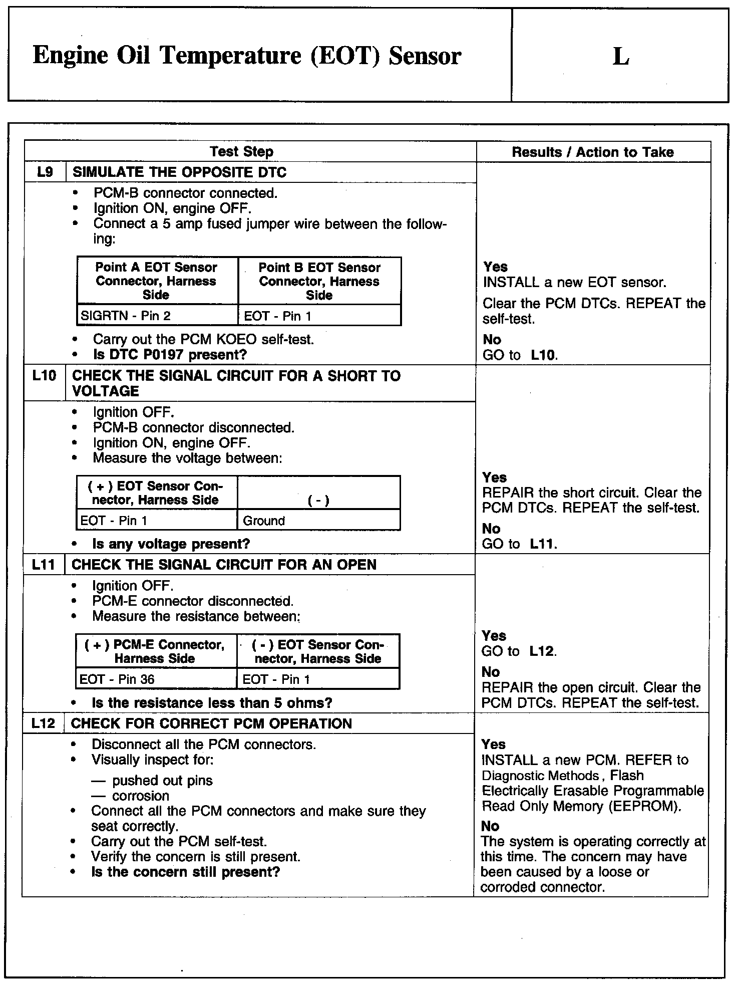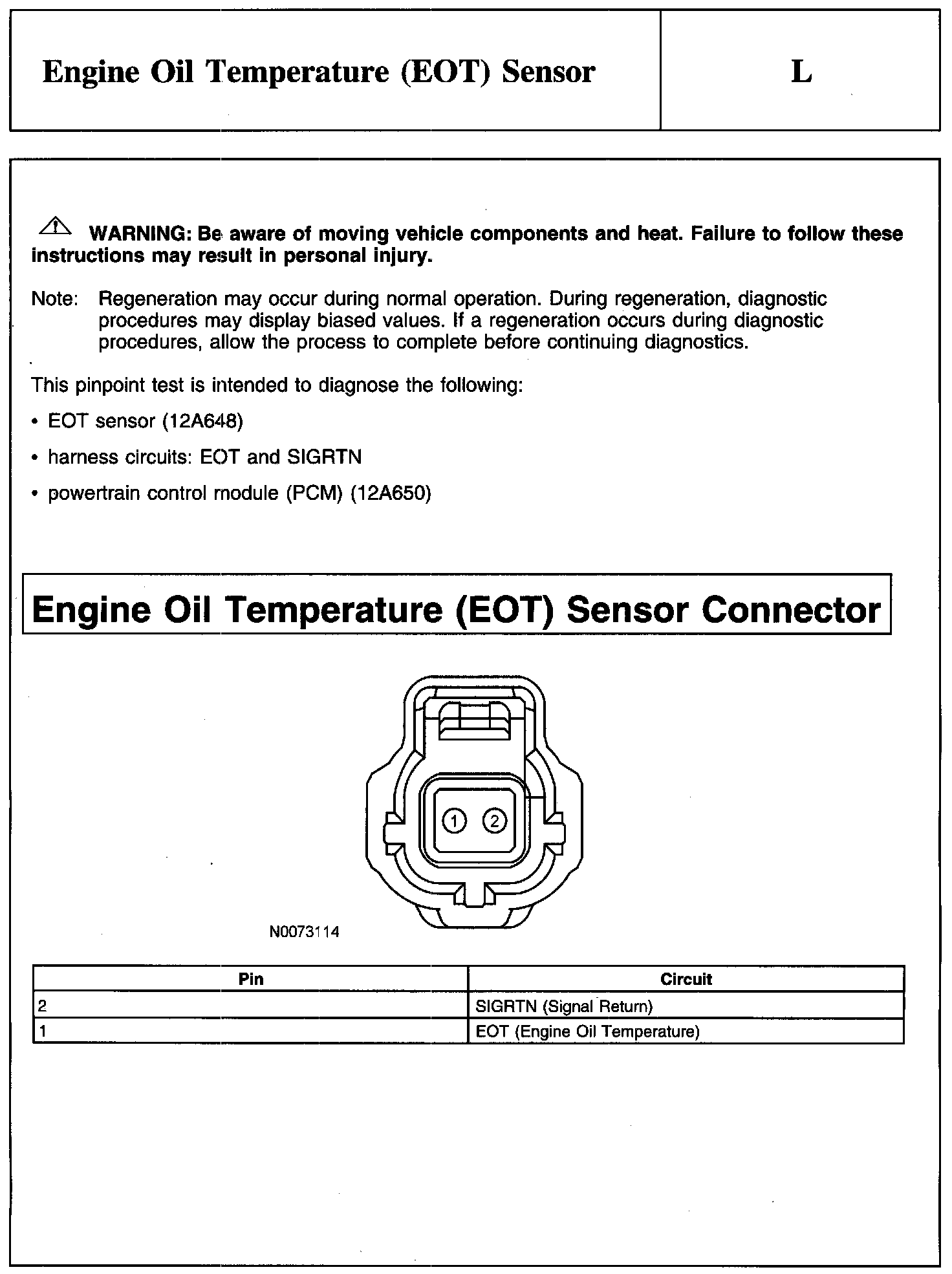 PINPOINT TEST L: ENGINE OIL TEMPERATURE (EOT) SENSOR
