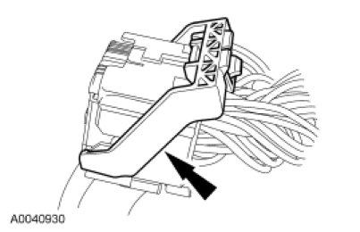 - NOTICE: Do not push the connector to where the lever pivots and seats itself. Light pressure is needed to get the connector into position on the Restraints Control Module (RCM) before using the lever to fully seat the connector. Failure to follow this instruction may result in component damage and/or system failure.