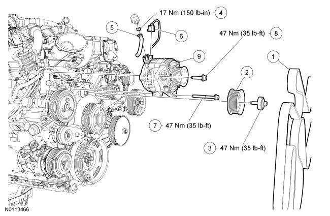 - To install, tighten to 47 Nm (35 lb-ft).