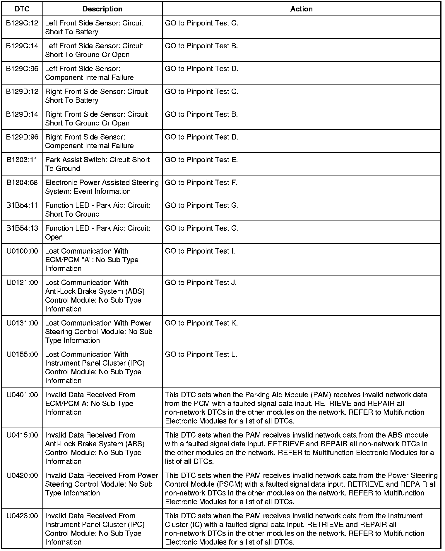 NOTE: This module utilizes a 5-character DTC followed by a 2-character failure-type code. The failure-type code provides information about specific fault conditions such as opens, or shorts to ground. Continuous memory DTCs have an additional 2-character DTC status code suffix to assist in determining DTC history.