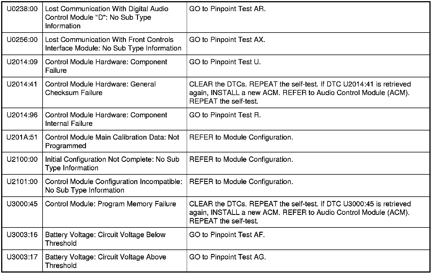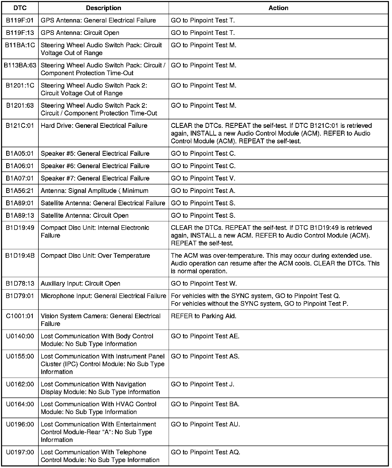 Audio Control Module (ACM) DTC Chart - With Navigation