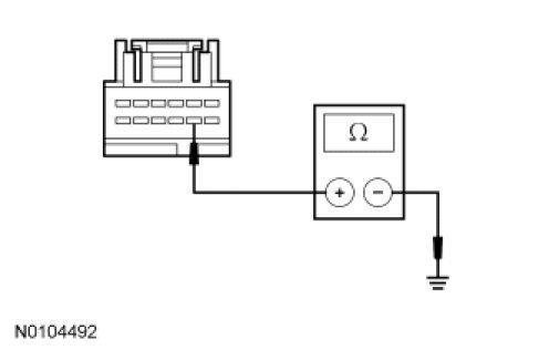 - Measure the resistance between the FDIM C2123-8, circuit GD114 (BK/BU), harness side and ground.