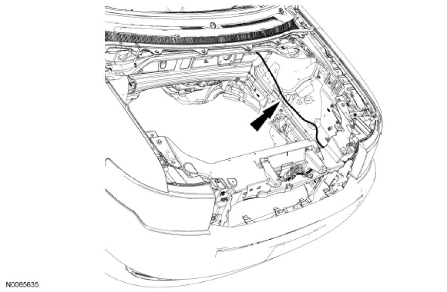 - Pull the hood latch release cable through the cowl panel into the engine compartment.