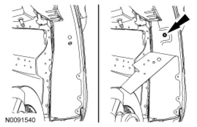 11. NOTE: If installing a new fender, the rear expandable foam baffle will be part of the new fender assembly. Use a locally obtained flexible foam repair material only if the rear foam baffle does not correctly seal the space between the rear expandable foam baffle and the cowling.
