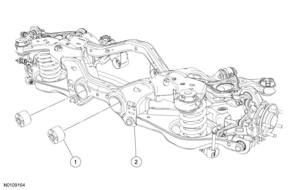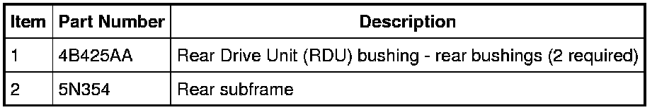 NOTE: There are 2 Rear Drive Unit (RDU) rear bushings in the rear subframe. This procedure shows how to remove one bushing. The procedure for the remaining RDU bushing is identical.