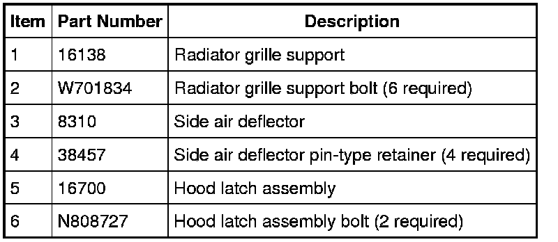 14. NOTICE: Inspect and transfer all of the radiator grille support insulators. Replace as necessary.