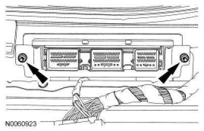 - Install and tighten the 3 PCM bracket nuts.