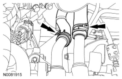 16. Remove the heater hoses from the heater hose tubes and position aside.