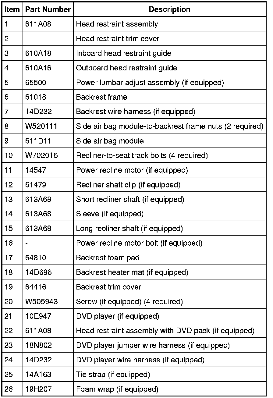 21. If equipped, remove the backrest and DVD player wire harness from the backrest frame.