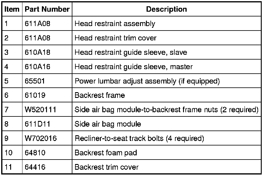 NOTE: If a side air bag deployment took place, a new seat back pad, trim cover and side air bag module and nuts must be installed. The seat back frame should be replaced if necessary.