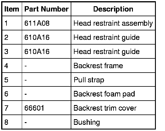 4. NOTE: Head restraint guide with release button goes on the LH side.