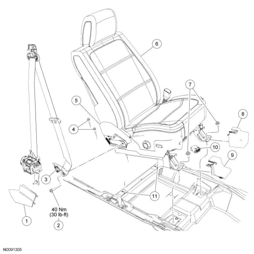 - Tighten to 40 Nm (30 lb-ft).