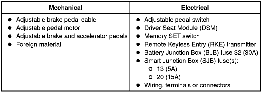 1. Verify the customer concern by operating the adjustable pedals.