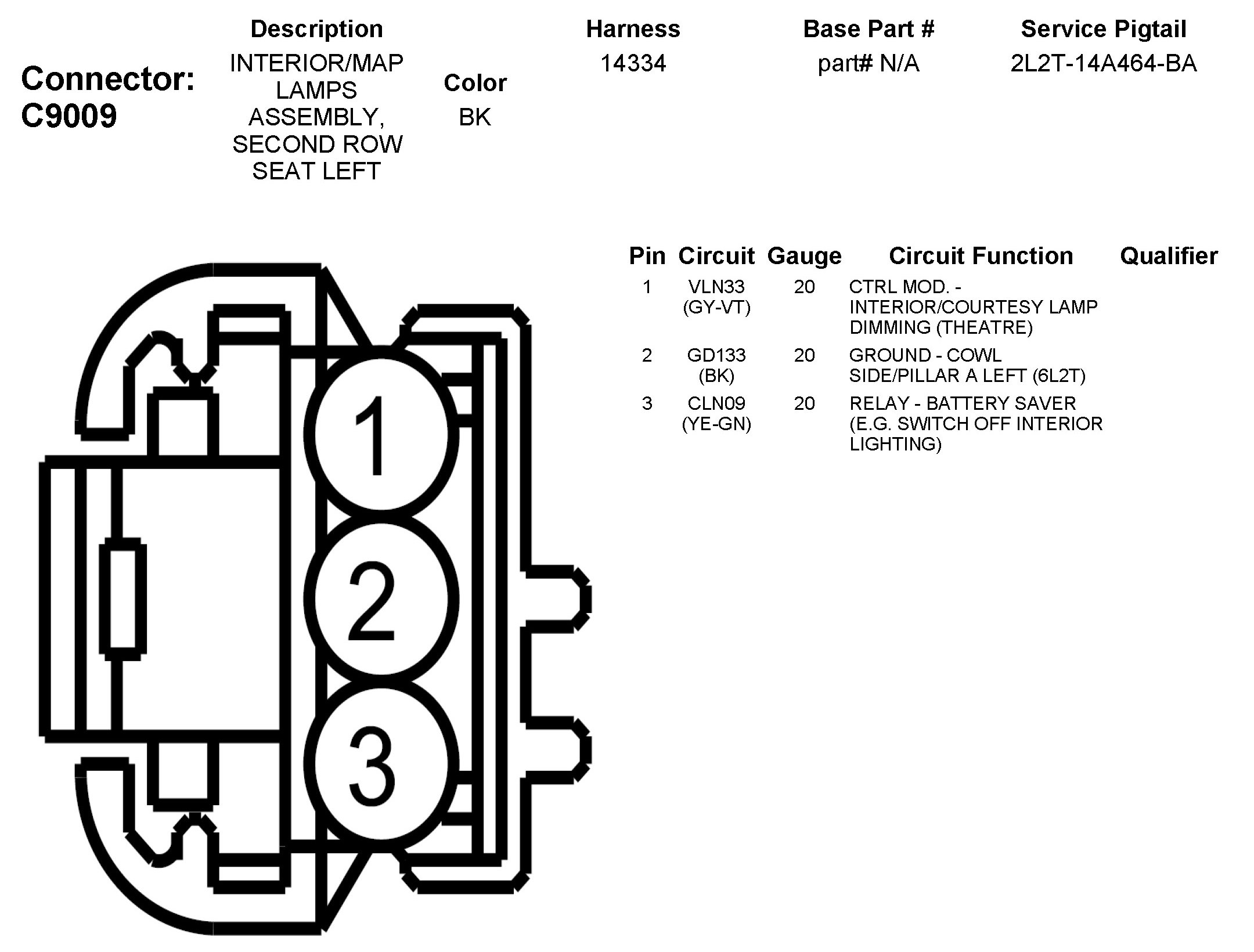 C9009 Interior/MAP Lamps Assembly, Second Row Seat Left
