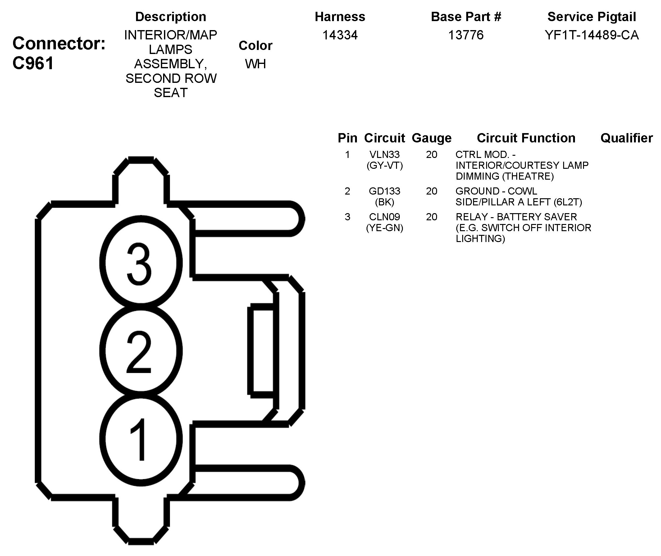 C961 Interior/MAP Lamps Assembly, Second Row Seat