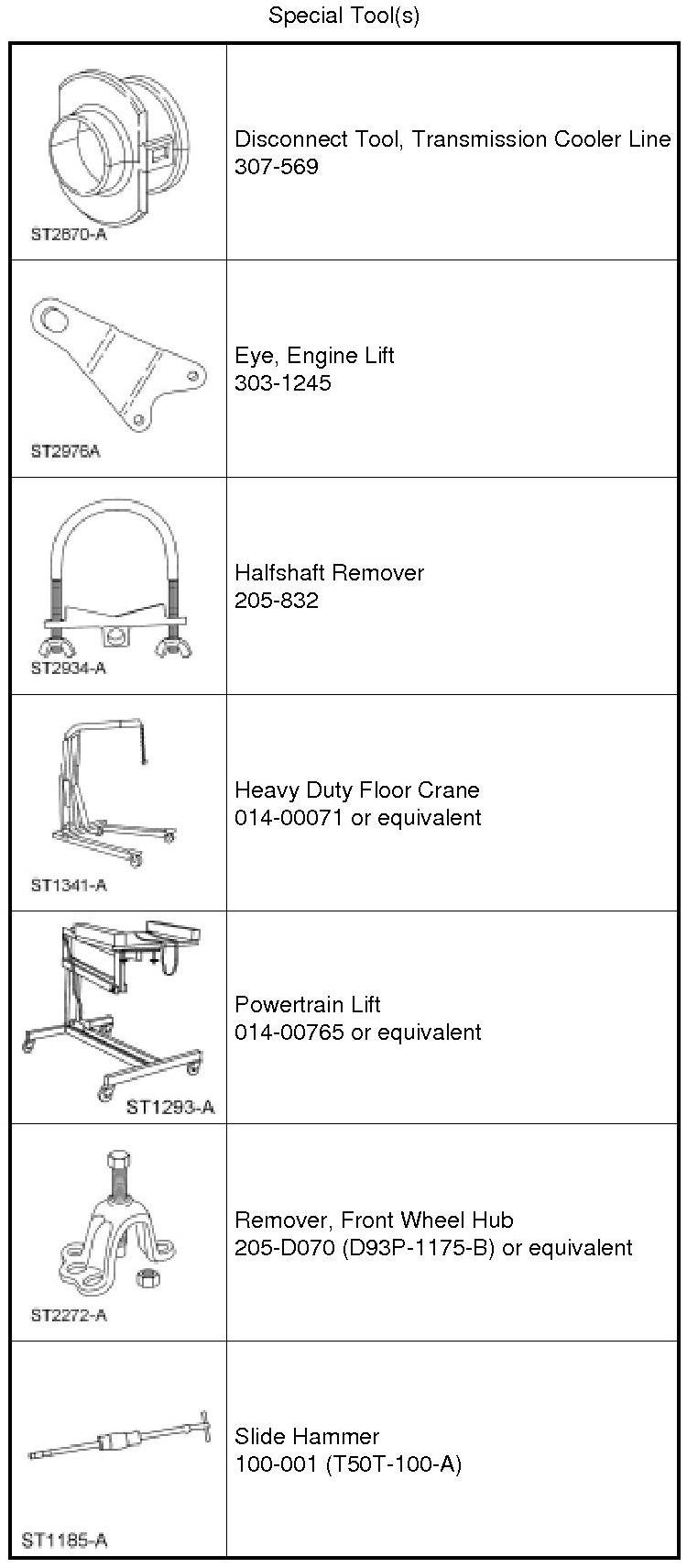 1. With the vehicle in NEUTRAL, position it on a hoist. For additional information, refer to Jacking and Lifting Service and Repair.