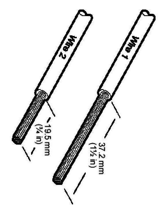 2. Strip 6.35mm (1/4 in) of insulation from each wire end, taking care not to nick or cut wire strands.