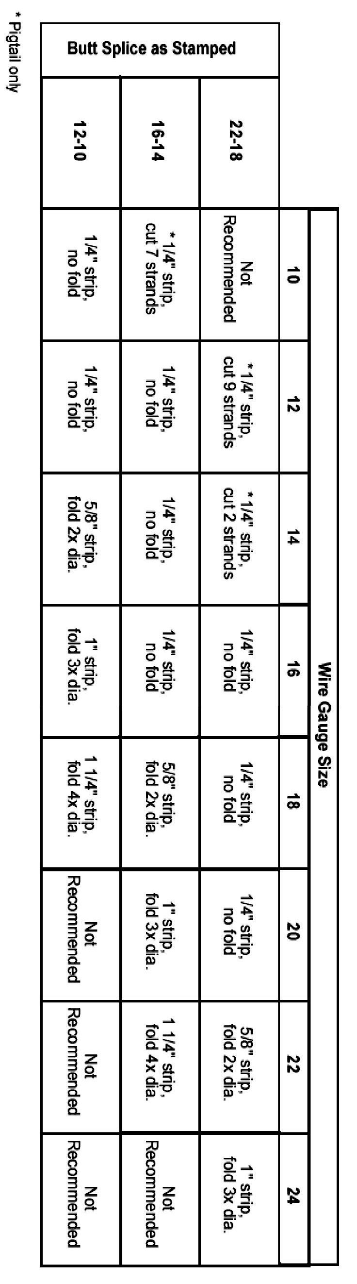 Recommended splicing method - Crimp (For 10-22 AWG Diameter Wire to Like Wire Diameter)
