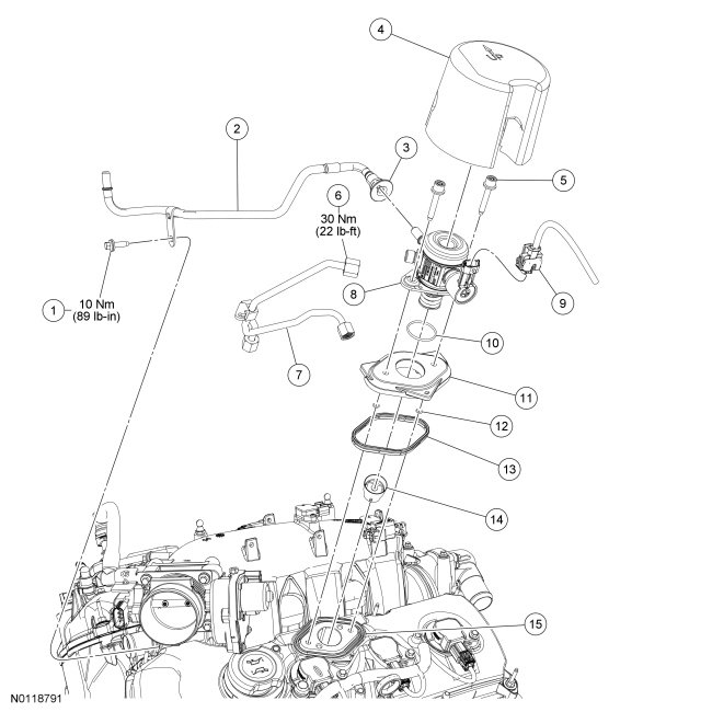 13. NOTE: Clean the fuel injection pump bolts and apply Thread Sealant with PTFE to the bolts.